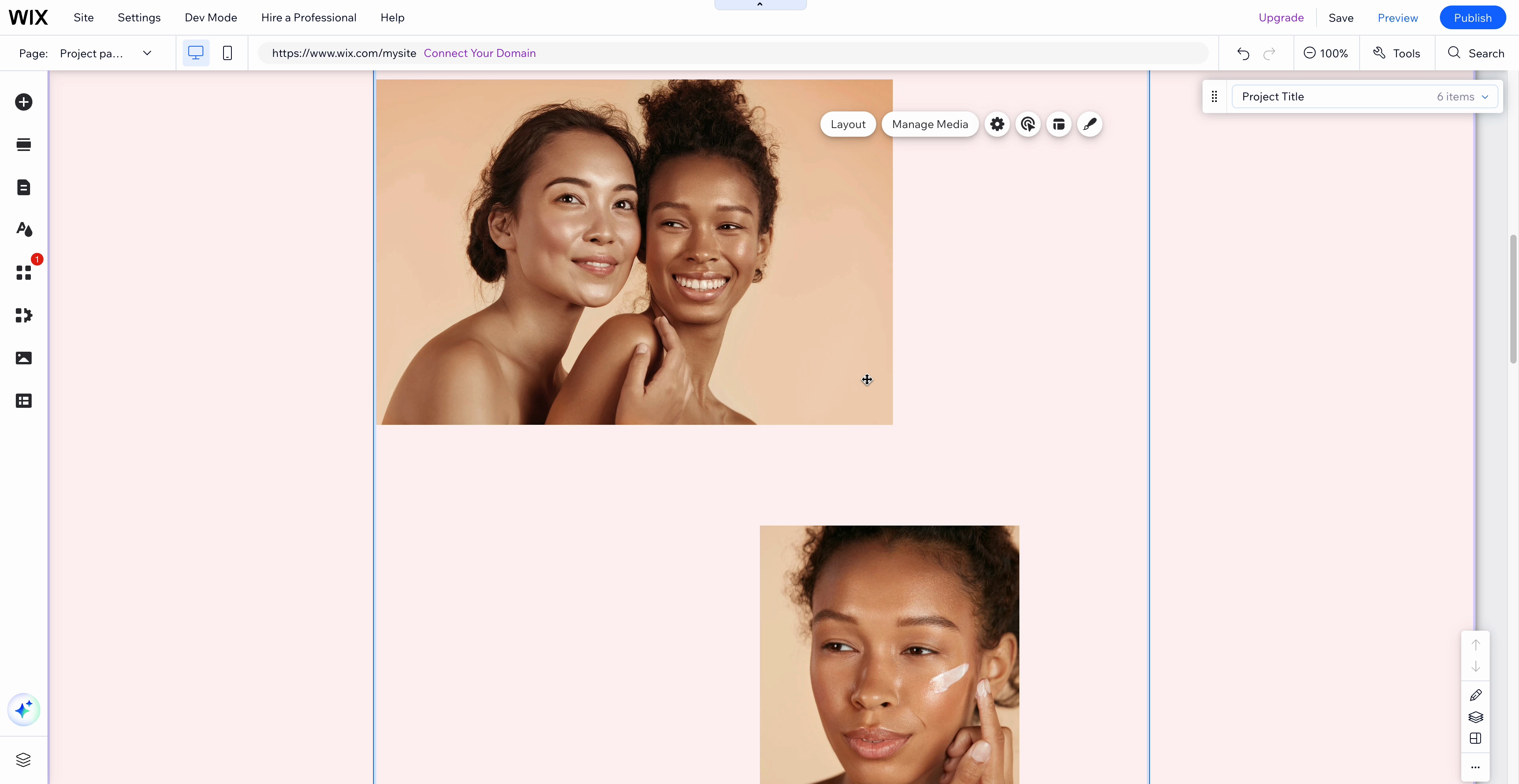 Wix offers a free plan, but that’ll be on a bad wixsite subdomain and show a Wix ad at the top of your portfolio website (something you probably don’t want your clients to see).