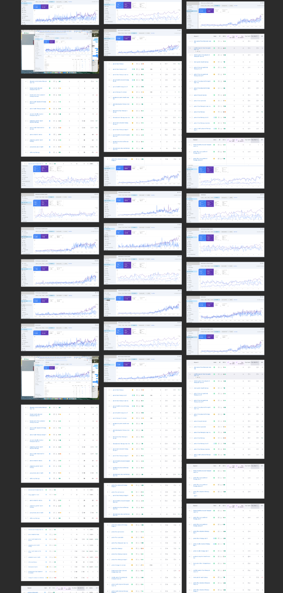 The services page features a stream of SEO result screenshots that build trust right away: